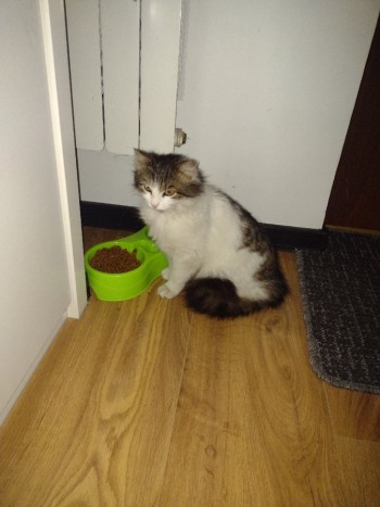 Puchata biało-ruda kotka.