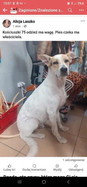 najprawdopodobniej uciekł z posesji przed burzą, boi się, brak obroży.