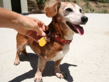 Ruda jamniczka Diana, urodzona w czerwcu, 2004. Znaleziona w Hiszpanii, na Costa del Sol, niestety dane właściciela są zastrzeżone a telefon nieaktualny :(