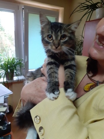 Śliczna mała oswojona kotka w wieku 3-4 miesiące. Szara pędzelkowate uszka któreś z rodziców rasowe chyba.