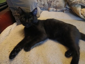 Piękny czarny kot przybłąkał się. W pełni udomowiony. Garnie się do ludzi. Niesamowity pieścioch. Sierść zadbana, obroża. Jeszcze nie w pełni dojrzały. Instyntkownie korzysta z kuwety.