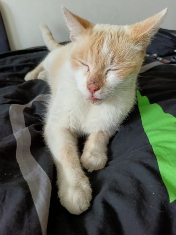 Zadbany, kremowo-biały kotek. Bardzo łagodny, ufny,podchodzi do ludzi bez problemu.