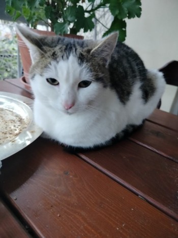 Przyjazna kotka nie boi się nikogo