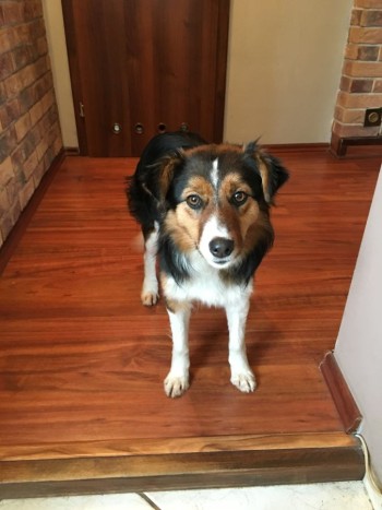 Samiczka, około 10 miesięcy, kuleje na prawą tylną łapkę, jest bardzo spokojna i ufna.