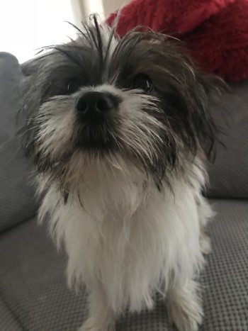 Piesek jest maści biało brązowo brunatnej. Jest niewielkiej wagi i niedużego wzrostu. Jest wesoły i pełen energii. Nie wykazuje leku przed człowiekiem.