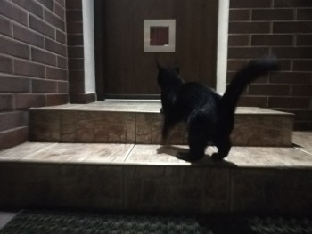czarny, młodu kot. charakterystyczny bujny, gruby ogon