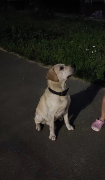 Молодий лабрадор ,бігав р-н центрального ринка Харків,зараз к нас дома ,чекаємо на власників.