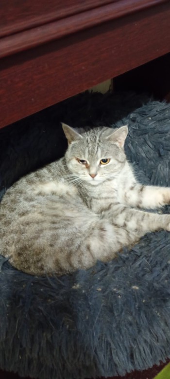 Viska ist Eine grau weis getigerte Katze, sehr scheu und wild. Ist uns beim Grenzübergang ausgebrochen. Vermutlich ist sie noch irgendwo da.