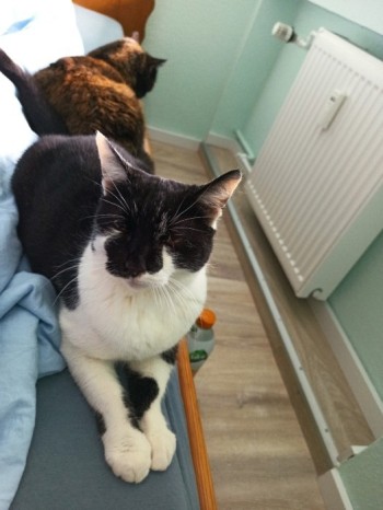 Ciapata ma prawie 12 lat, nie ma połowy zębów, dużo miauczy I jest bardzo przymilna. Do obcych osób odnosi się z rezerwą.