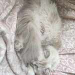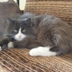 12 letni, kastrowany kocur syberyjski, długowłosy maści szarej z białym pyszczkiem i skarpetkami