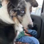 Pies ma jedno oko niebieskie, drugie brązowe. Maści biało-czarno-brązowej.średniej wielkości ok 60 cm. waga ok.23 kg. Pies bardzo przyjazny