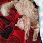 Przyjazny, lgnie do ludzi. Ostrzyżony. Wygląda jak mały lew.
