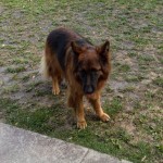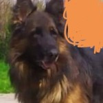Owczarek niemiecki długowłosy. Na brwi ma małą bliznę - brak sierści w tym miejscu. Ma na sobie czerwoną obrożę. W środku podpisana jego imieniem NELSON ( ma także numer telefonu, jednak nieaktywny, po dawnym właścicielu).