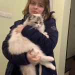 oczy zielone, maść niebieska, sierść srebrzysto szara, dość szczupła, kotka 2,5 roku