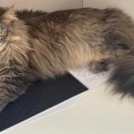 Średniej wielkości kotka Maine Coon o imieniu Lucy. Z pewnością jest przestraszona, proszę o pomoc