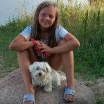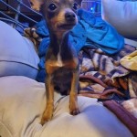 Maylo.Roczny Pinczer miniaturowy o niebieskim umaszczeniu z białym krawatem. Posiada obroże z wizytówką z własnym Imieniem i niestety nieaktualnym nr kontaktowym.