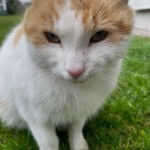 kotek mlody ,biało rudy, bardzo ufny do ludzi