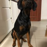 Samiec, wabi się Fokus, wiek 10 miesięcy, czarny, podpalany, krótko włosy, przyjazny do ludzi i zwierząt, mieszkał w domu z rodziną, dzieckiem