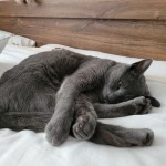 Kocurek, jest szary w cętki, ma rudawe podbrzusze i biały krawat, na imię ma Stefan, pierwszego czerwca skończył rok