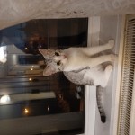 Kotek ma na imię Ignaś. Ma 12 miesięcy. Jest szaro biały. Jest ostrożny, lubi się bawić. Lubi gryzć palce u rąk. Potrafi zasyczeć na obcą osobę. Reaguje na imię.