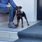 Suczka bardzo łagodna Wabi się Nela miała kitkę zrobioną i miała obroże przeciwko Kleszczom ciemno szaro . Posiada chipa