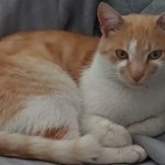 Biało-rudy. Ok. 2 lat. Przyjazny. Kot wychodzący. Nie reaguje na żadne imię.