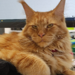 ruda, duża kotka, ok 7 kg, ponad 1 m długości z ogonem, niecały rok. Łagodna;