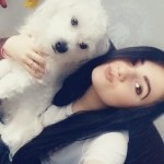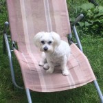 Piesek jasny, z przewagą beżowego koloru, w niektórych miejscach biały, ma na środku główki biała plamkę układająca się w kształt serduszka.