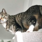 Czarno-brązowy kocurek długowłosy. Cechą charakterystyczną są duży puszysty ogon, żółte odblaskowe oczy, dwa białe wąsiki, pędzelki w uszach.Ma na imię Lucuś. Reaguje na imię i dźwięk kociego jedzenia.