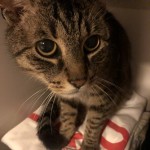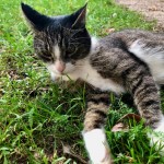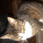Kot czarno-biały, biały krawat, przednie stópki i większa część tylnych nóżek, ogon cały czarny. Wabi się Dominik