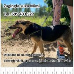 Suczka Mania.Reaguje na swoje imię. Brązowo ruda lekko przypalana, mieszaniec. Świeżo po adopcji , jeszcze nie zdążyła się zadomowić. Prawdopodobnie nie jest w stanie odnaleźć drogi do nowego domu. Zaginęła w Łazach przy ulicy Młynek.