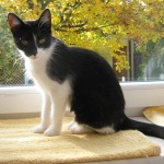 Piesek jest młody, ma 7-8 miesięcy. Białe łapki z przodu, biały szalik, białe czoło i pyszczek. Reszta czarna. Ogon na końcu biały. Bardzo towarzyski, przyjazny i ruchliwy. Lubi zabawę oraz gonitwę za patykiem. Podchodzi do ludzi i skacze na nich.