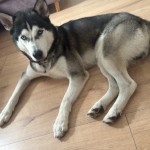Suka husky, ciemna sierść, łatka biała na karku