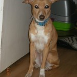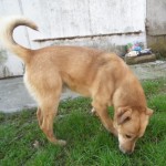 Rudy psiak 2 letni,do kolan , cecha szczególna Brak Ogonka i wilcze pazury przy tylnych łapkach
