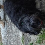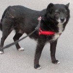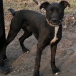 mały czarny kundelek, biała plama na szyi. Ciapek