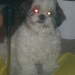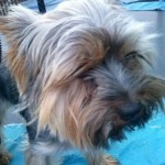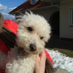 4 letni, wykastrowany biały pudelek Czaruś( końcówki włosów morelowe). Możliwe, że miał kolorowe-fioletowe (w kratke) ubranko i obroże z diamencikami.