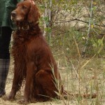 kolor mahoniowy,średniej wielkości ma obrożę.