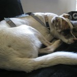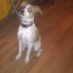 Piesz nie słyszy. Jest średniego wzrostu,bardzo potulny, z charakterystyczną brązową plamką wokół oka.