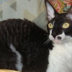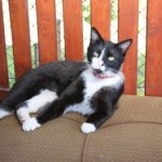 Czarna krótka sierśc, biały krawacik i białe końcówki łapek