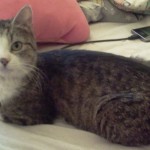 Kotka ma niecałe trzy lata, ale i tak jak na kota rasy europejskiej jest raczej mała. Cechy szczególne: brązowa plamka z prawej strony nosa na białym futerku pyszczka. Umaszczenie - bure, pręgowane, biały pyszczek i śliniaczek, białe skarpetki, małe uszy.
