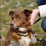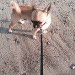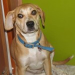 Maść brązowo biała, charakterystyczna plamka na pyszczku z lewej strony, obroża z danymi kontaktowymi. Bardzo łagodny, przyjazny. Lgnie do ludzi.