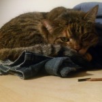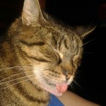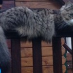 czarna, z białą łatką pod szyją, puszysta, wabi się Mania, jednak nie zawsze reaguje na swoje imię, cieniutki głosik (prawie niesłyszalny)