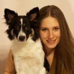 Imie Tajga. Niebieskie oczy. Miała na sobie ciemne szelki. Lekko pokraczny tylny krok. Przyjacielska