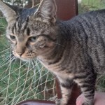Kotek jest dachowcem, w pręgi. Jest wysytaszony bo jest niewychodzący i wysterylizowany.