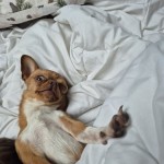 Bury kotek z rudym futerkiem na brzuszku. NIskiego wzrostu, po operacji stomatologicznej, ma tylko kły.