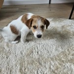 Piesek zaginął 4.01.2025r. w godzinach popoludniowych. Jest bardzo żywy i energiczny. Umaszczenie biało- brązowe. Długie łapki.