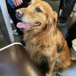 Xiao Ming, golden retriever, male, 37-38kg, 9 years old, very friendly, has a Belgian chip and a Chinese one, wearing a harness around his waist.