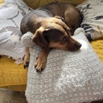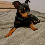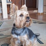 Brązowy z siwym umaszczeniem na pyszczku. Przyjacielski dla ludzi. Reaguje na imię Irek bądź Iruś
