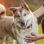 Srebrna Łajka syberyjska. Przyjazny do ludzi, można go złapać i zapoznać się z zwierzęciem.