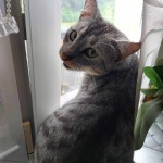 kotka buro szarą. reaguje na imię Gloria